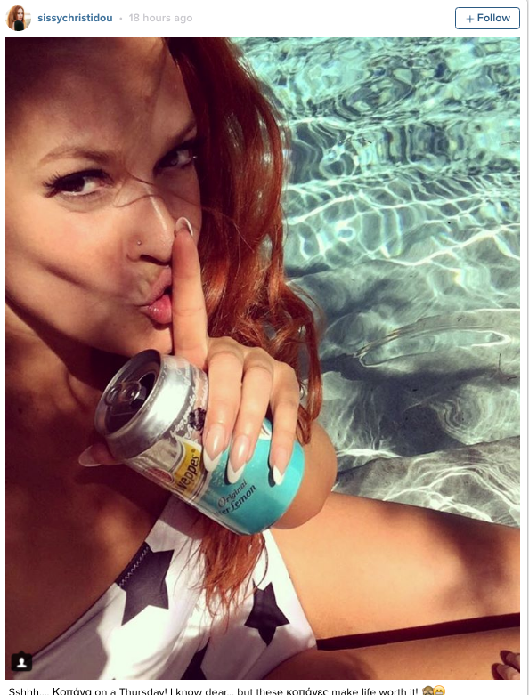 Greek TV personality, show host and designer, Sissy Christidou posted a photo on her instagram profile responding to some un-retouched pictures of hers that made the internet round recently. Sissy travelled to Mykonos over the weekend with her friend Christina Kontova. ‘GossipTV’ and ‘Weekly Magazine’ spotted the two enjoying a brief respite. Her latest photo shows her in a swimsuit with the comment ’Sshhhh. I skipped work on Thursday. I know dear…But this is what makes life worthwhile’.