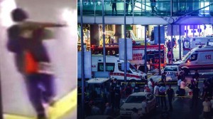 Shocking video footage has emerged from the terror attacks at the ‘Kemal Ataturk’ airport in Istanbul that killed 36 people and injured over 140. The video from airport security cameras shows one of the three suicide bombers the moment he detonates his belt among civilians. The footage shows the area packed with unsuspecting travellers, who start running in panic after the explosion. The second video is even more chilling with people trying to find shelter and escape the pandemonium after the explosion. At one point the suicide bomber, who appears to be wielding a gun drops to the floor after being shot by police, according to Turkish media reports. As a police officer approaches the wounded bomber, he realises he has a suicide belt and is about to trigger it. The officer tries to run away, as the man on the ground detonates the bomb strapped to him. The images are reminiscent of the bomb attacks in Brussels when jihadist suicide bombers unleashed terror in the Belgian capital.