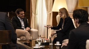 Greek PM Alexis Tsipras took some time off from his heavy schedule of meetings with multiple officials over the Siemens trial cases and met with the beautiful former Danish PM Helle Thorning-Schmidt at Maximos Hall, Thursday. The charming blonde Danish politician met with the Greek PM is her capacity as CEO of NGO Save the Children, with Migration Minister John Mouzalas also present. Their meeting focussed on the refuge crisis and the ordeal of the unaccompanied refugee children. The 49-year old woman had caused some controversy during Nelson Mandela’s funeral in 2013, when she took selfies with US President Barack Obama, something first lady Michelle clearly disapproved of. The blonde politicians also made quite an impression on other world leaders like former UK PM David Cameron and former French President Nicolas Sarkozy.