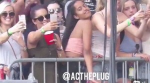President Obama’s oldest daughter could be seen twerking and grinding with a few gal pals on Sunday while enjoying a performance from rapper Bryson Tiller.