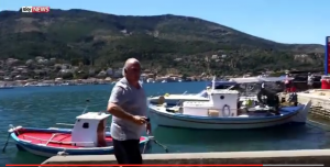Sky News took a water taxi from the port of Ithaca in an attempt to track him down.