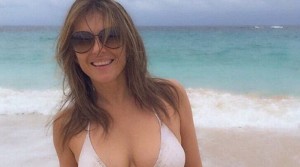 British beauty Elizabeth Hurley posted on Instagram a picture of her bikini, showing off her amazing body. The actress and model is wearing a white bikini and sunglasses as she smiles for the camera.