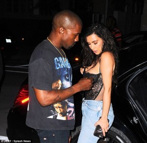 Kim looked confident in her ultra sexy look while Kanye West lent a helpful hand to his wife as she ensured her outfit was camera ready. The rapper looked to be reaching for his wife’s bountiful cleavage as she adjusted the neckline of her extra low top while heading to dinner at Prime One Twelve in Miami. Kanye could hardly take his eyes off of his wife’s chest.