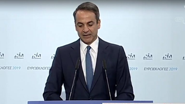 New Democracy President Kyriakos Mitsotakis called on Prime Minister Alexis Tsipras to resign and call early elections. In a statement he made to the press following his party’s landslide victory in the European Elections, Mr. Mitsotakis thanked all the voters who supported him, as well as those who did not. He reiterated his view that the country was undergoing a major political shift. The leader of ND said that the time until the expiration of Tsipras’s term seems short but added that many things could go wrong in such a period.