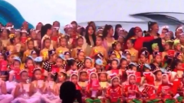 A viral video of the tragic event, which captures the exact moment of the collapse, shows brightly-costumed children standing or sitting cheek-by-jowl in roughly ten very long rows, as still more children are directed onto the stage.