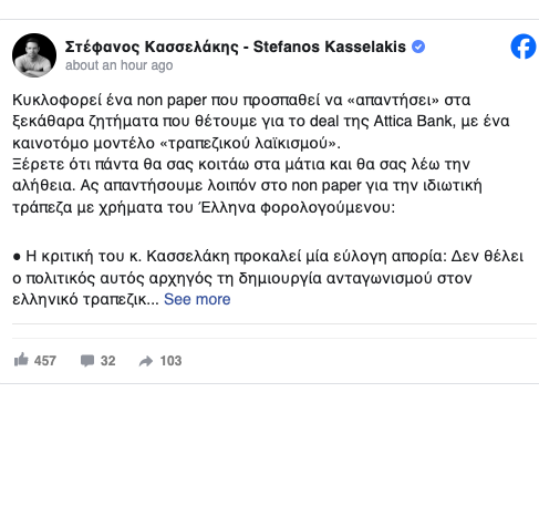 A non-paper is circulating that tries to “respond” to the clear issues we raise about the Attica Bank deal, with an innovative model of “bank populism.”