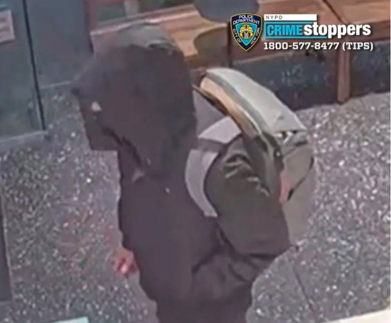 The suspect is described as a white male, wearing a beige jacket, a black face mask, black and white sneakers and a grey backpack. Witnesses said the suspect fled on a bicycle and is believed to have headed toward Central Park.