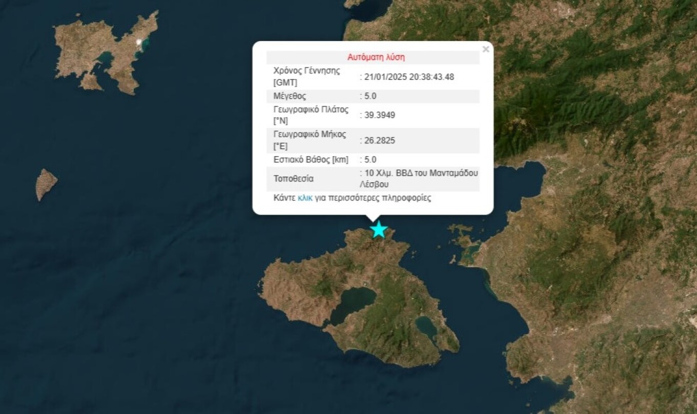 A seismic tremor measuring 5.0 struck Lesvos on Tuesday night at 10:38 PM.