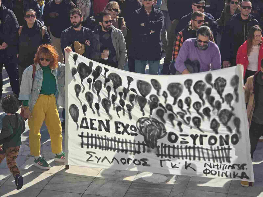 Citizens of Pyrgos and Amaliada took to the streets today under the slogan “I have no oxygen,” demanding justice for the victims of the tragic accident in Tempi.