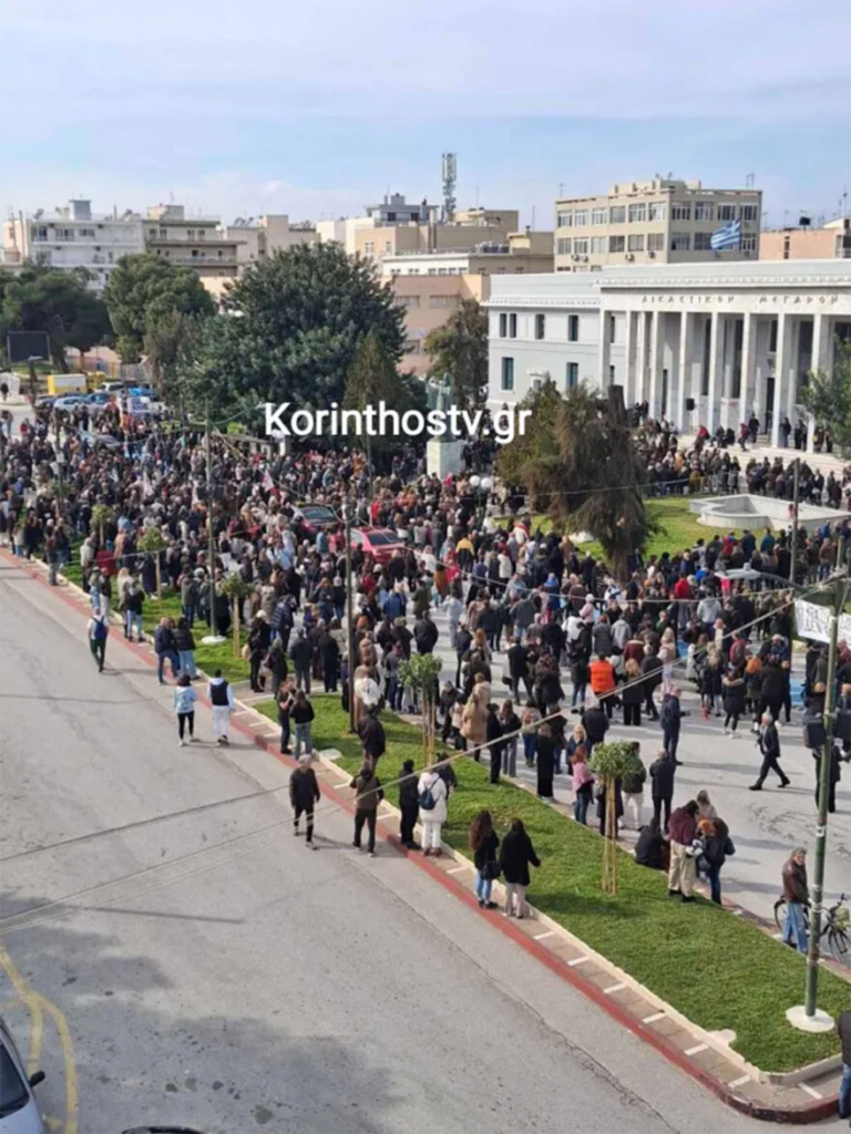 A snapshot captures the protest held in Gytheio, where residents gathered to express their solidarity and demand accountability for the Tempi tragedy. The demonstration reflected the shared grief and determination seen across Greece.