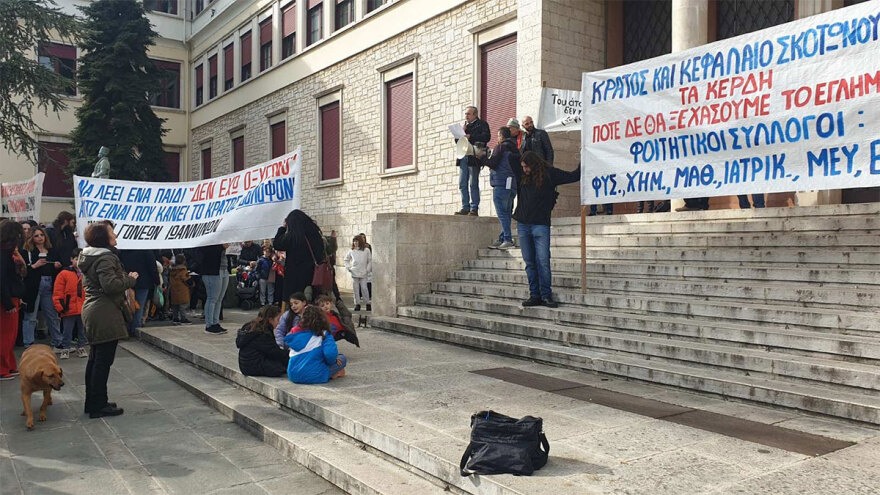 Images capture moments from the protest in Ioannina, where participants gathered to voice their demands and show solidarity.