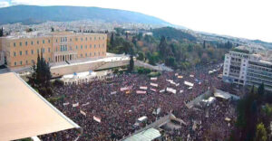 A large crowd, including people of all ages—students, schools, university attendees, and organized associations—gathered to join their voices with the rest of Greece in a collective call for justice and accountability.