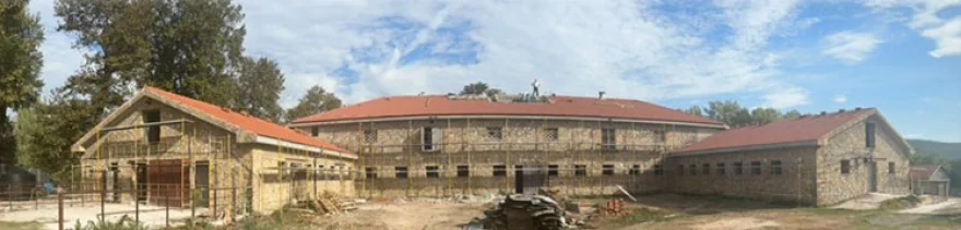 The total area of the building is approximately 1500 square meters and is shaped in a “P” shape. The central part is two-storey and elongated, while the two legs are ground floor and of smaller size. The lower level housed the cattle with feeders and other equipment. The upper level of the middle section was used as a preparation area for the feed, which was channelled through suitable channels to the lower level. It had a capacity of 90 animals, this number sometimes reaching 100, and employed 4 stable hands.