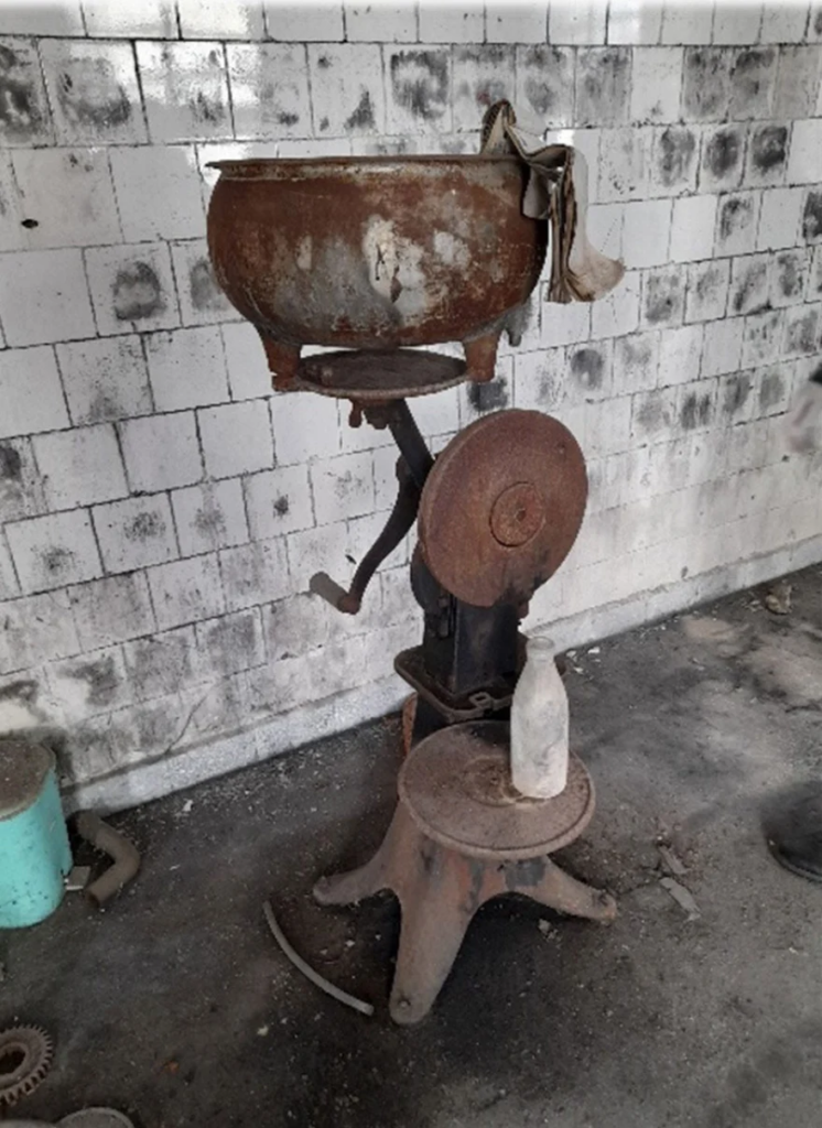 The study involves the conservation of elements of the historic mechanical equipment in the Neo Voustatiou building, as well as selected, metal and wooden farm objects. The metal objects include manger, signs with animal names, water supply elements of the older watering system, in the storage areas, silos for processing, mixing and distribution of feed. Farm tools, with wooden and metal preservation elements, include forks (an agricultural tool used to assist in the process of fertilization), sickle, rake, sieve, dummy, sprayer, milk cans.