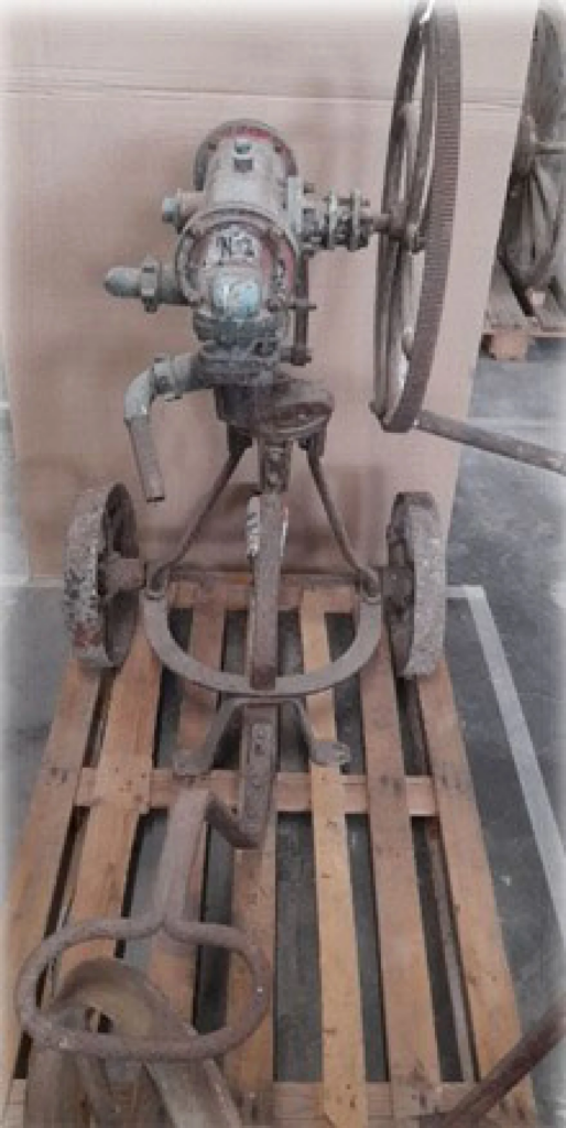 The wooden items relate to tools and agricultural production machinery, which were found inside the premises of Neo Voustasiou and on a wooden sign from the Tatoi estate. The machinery and equipment related to the production process of the winery include a manual bottle sealing device, a rotary-manual wine press, a milk skimmer, a pump for the decanting of must (liquid product obtained from fresh grapes, natural or by natural treatments), a belt-driven wine press-rotary, an agricultural tractor (tractor), a wine warehouse, oak barrels. Both the metal and wooden elements of the tools and machinery are in poor condition, mainly due to their long-term storage in unsuitable environmental conditions.