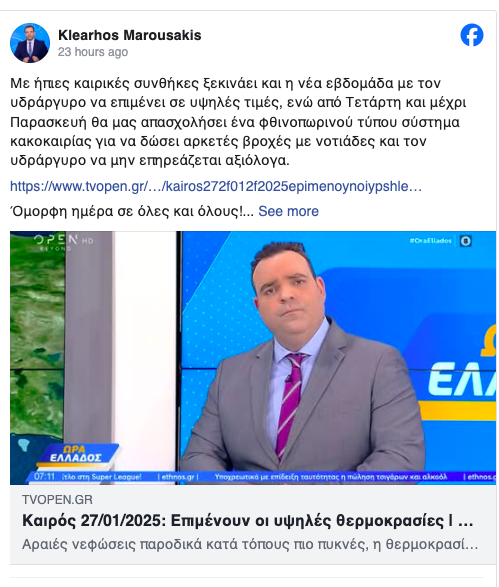 The week began with mild conditions and gradually rising temperatures, but meteorologist Klearchos Marousakis forecasts a significant shift starting Wednesday. A strong autumn-like weather system is expected, bringing rain showers and southerly winds through Friday.