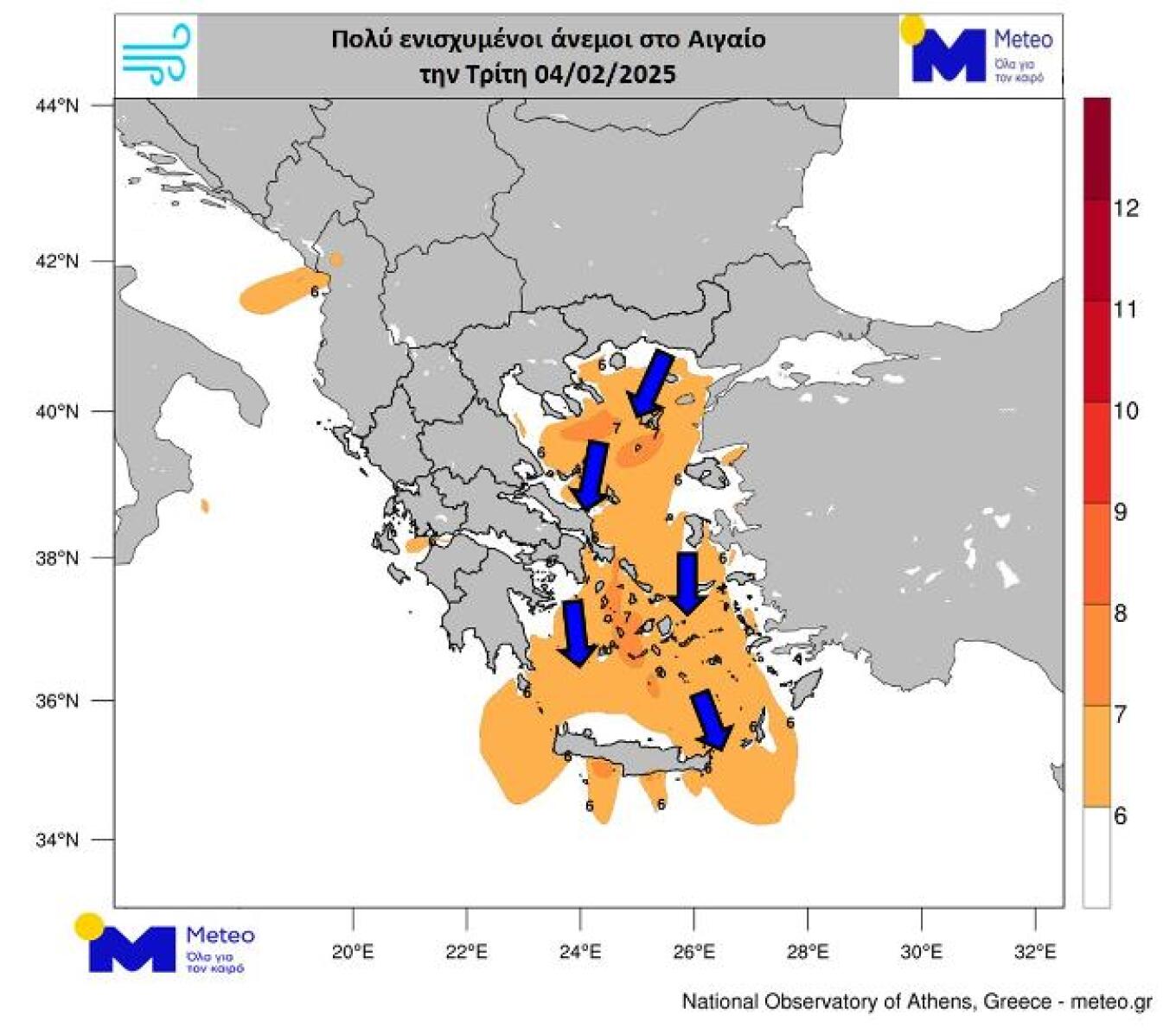 - From late Tuesday morning (04-02-2025) in the Cyclades and the Eastern Aegean islands.