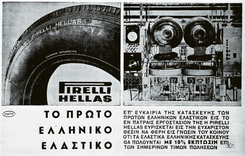 “The tires on my car are Greek,” was a popular sticker on countless cars, trucks, and buses in Greece. Most of these vehicles were fitted with tires from the Italian tire manufacturer Pirelli’s factory in Patras, which boasted the most modern equipment.