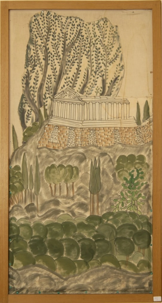 By the 1930s and 1940s, Sotiris Spatharis had become the preferred performer among Athens’ artists and intellectuals, with his wife and son assisting in creating stage sets and costumes. One of his most significant contributions was introducing advertising “Reklama”, a unique form of folk painting used in Karagiozis performances.
