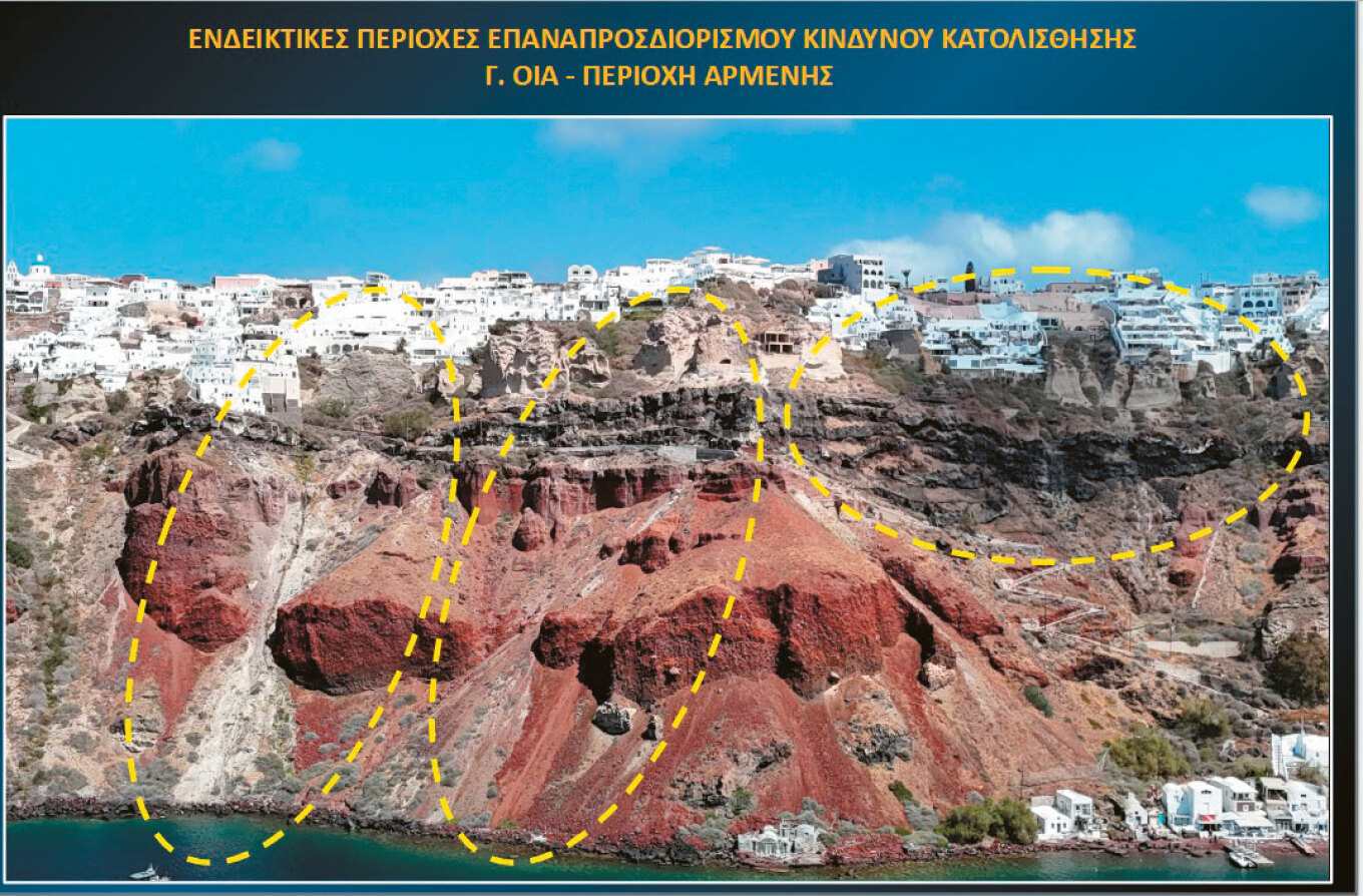 Slides from Professor Efthymios Lekkas’ study expose the dangers faced by homes built on Santorini’s Caldera.