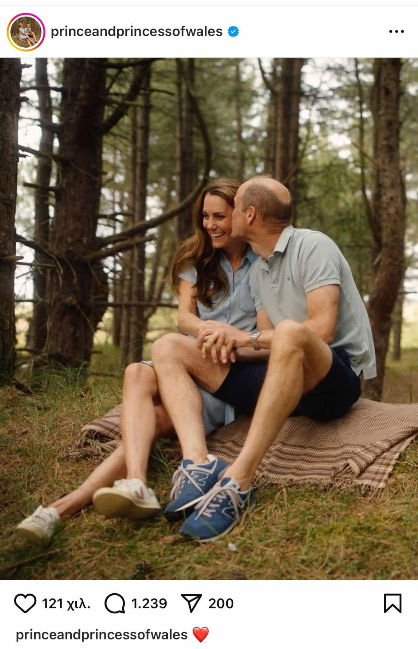 Kate Middleton and Prince William were among the many couples who chose to celebrate Valentine’s Day with a heartfelt social media post. Specifically, a photo of the couple was shared on the official Instagram account of the Prince and Princess of Wales, capturing them in a wooded setting. In this tender moment, Prince William is seen kissing his wife while holding her hand, as she gently holds his in return.