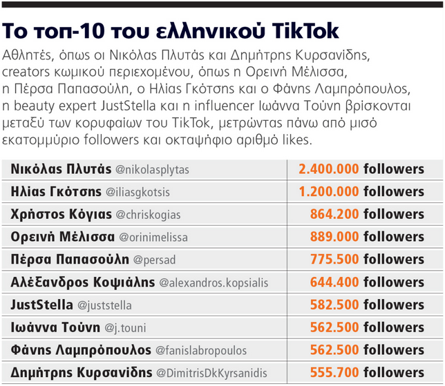 The most popular “heroes” next door and the videos with millions of views. Product-persons, but also influential opinion-makers in a global community of 1 billion users, including 4 million Greeks.