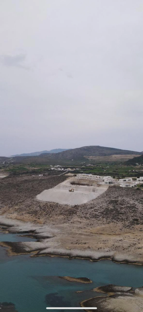 Construction work for the expansion of the luxury White Coast resort in Mytakas, near Sarakiniko Beach, Milos, continues at full speed. Despite public outcry and interventions from authorities, the owner company has not halted the development, which threatens the island’s unique natural landscape.
