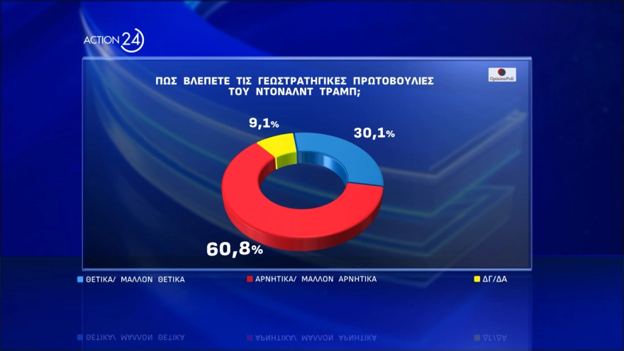 The Opinion Poll survey, presented on Action 24’s main news bulletin, places Zoe Konstantopoulou’s party, Plefsi Eleftherias, in second place. Meanwhile, Kyriakos Mitsotakis maintains a strong lead for the premiership, and ND remains at the same levels as the European elections in voting intention, while PASOK continues to decline. The survey was completed on March 18, two months after the last published poll by the company, and examines the political landscape following an intense two-month period dominated by protests over the Tempi tragedy.