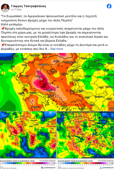 Meteorologist Giorgos Tsatrafilias also posted on social media, predicting rain across the country until next Thursday.