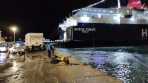 Passengers aboard the “Nissos Rodos” ferry, which serves the Mytilene – Chios – Piraeus route, endured a rough evening on Monday due to the gale-force winds sweeping through the area and the severe weather system currently underway.