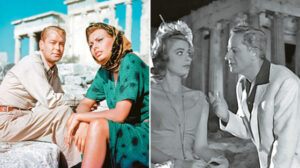 Among the scenes in the film, which was shot exclusively in Greece, is a particularly atmospheric evening shot of Melina and Dassin sitting on the Holy Rock and chatting against the backdrop of the illuminated Parthenon.