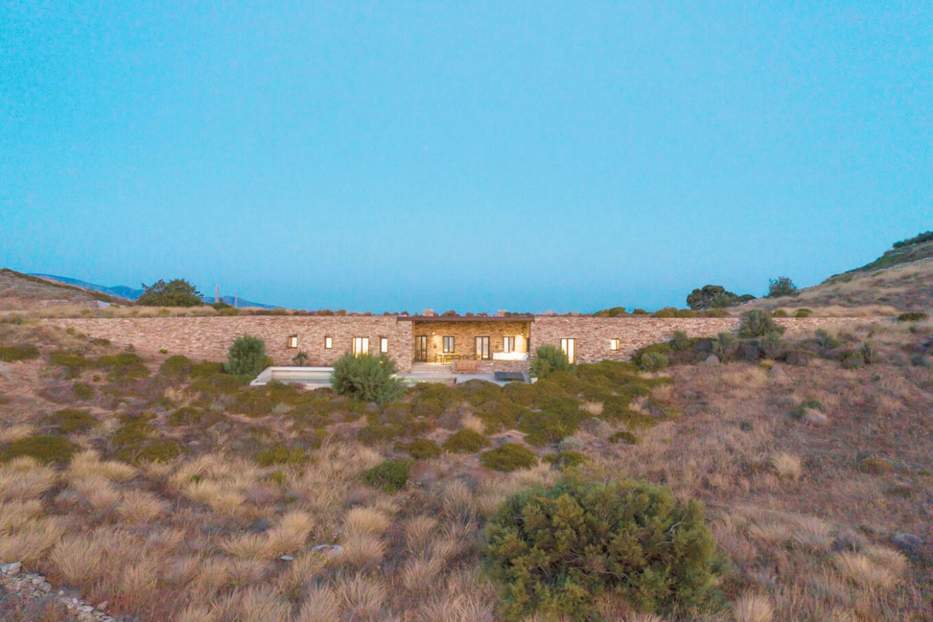 It’s all part of the “package” that comes with luxury and seclusion in an Antiparos that’s changing face, often uncharted. In spots where there was no electricity just a few years ago, underground houses of striking design are now literally sprouting from the earth. These are villas spanning hundreds of square meters that are invisible from afar. Rather than dominating the landscape, they melt into it. Their rooftops are covered in natural vegetation, their walls match the color of stone, and their pools reflect the sky like lakes in a cave.