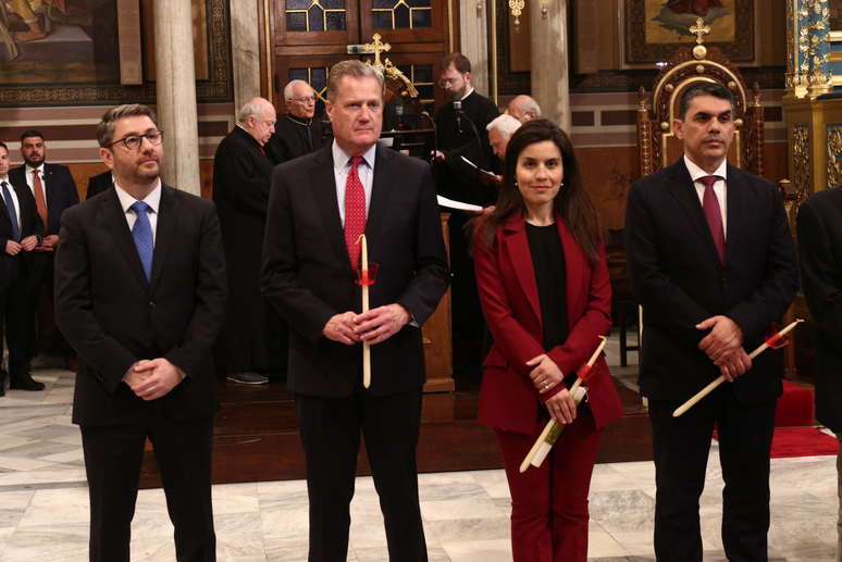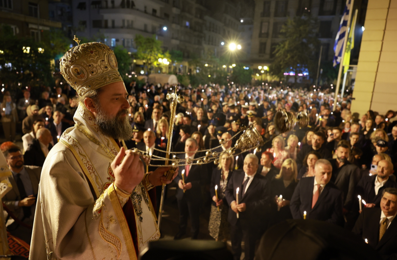 Representatives of the government, the president of PASOK – KINAL, Nikos Androulakis, members of the opposition, Armed Forces, Security Services, and local authorities were among those present at the Resurrection Service.