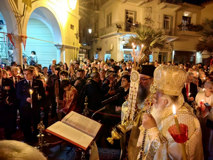 In Thessaloniki, the message of the Resurrection was proclaimed in all churches, filled to capacity with worshippers. The bells rang joyfully, and the hymn “Christ is Risen” echoed throughout the city. At the Metropolitan Church of Saint Gregory Palamas, the service was led by Metropolitan Philotheos of Thessaloniki, who stated in his message: “There is no sound more wondrous than this.” He urged the faithful to remain for the Resurrection Divine Liturgy, so they could become, as he said, “eyewitnesses of the Risen Christ.”