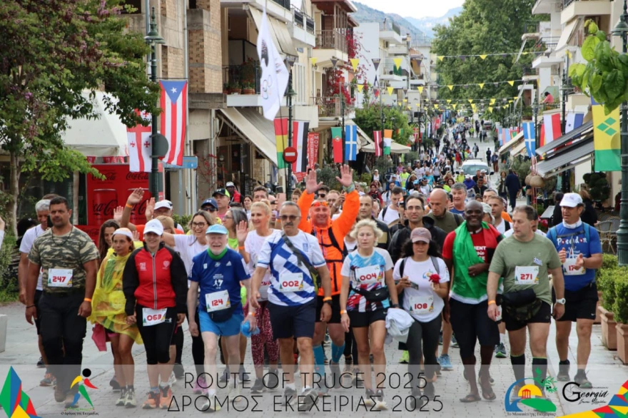 The “Road of Truce 2025” followed the Ecotourism Route from Elis to Olympia, emphasizing a non-competitive spirit. Participants who completed the 50 km path were awarded unique, numbered medals.