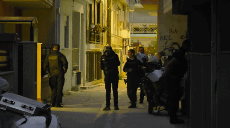 At the scene on Leonidou Street, police and an EKAB ambulance responded, and a forensic examiner is expected to arrive.