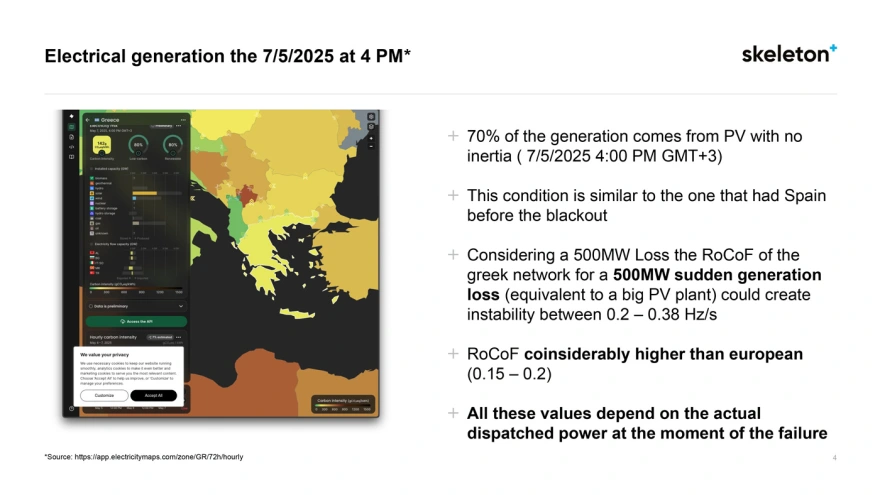 According to Taavi Madiberk, President and CEO of Skeleton, Greece faces even greater risks than Spain did before its blackout. Data indicates that Greece’s grid is in a particularly vulnerable state, with low voltage stability and limited recent investments in modernization. Despite being one of the largest producers of renewable energy within the Eurozone, Greece’s infrastructure is reportedly less prepared to manage the demands of a modern, renewable-heavy grid.
