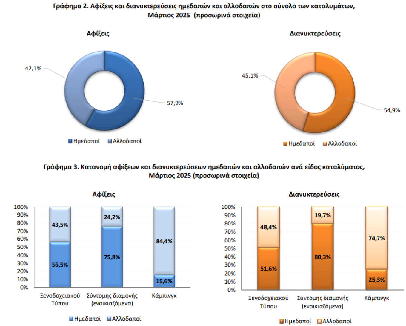 Greek residents contributed more significantly to the total arrivals and overnight stays, accounting for 57.9% and 54.9%, respectively.