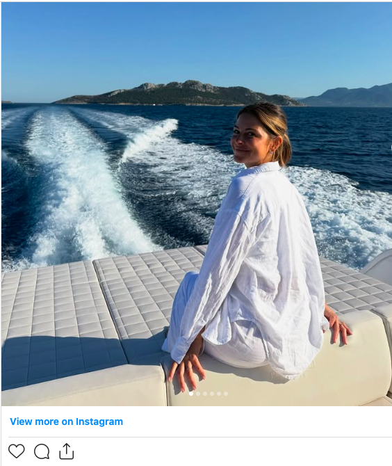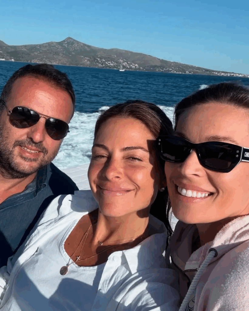 She spent the day with Sotiris Kyranakos and Marietta Chrousala. “Sun, salt, soul reset. A perfect day on the boat with my koumbaros Sotiris, my Marietta, and my little ray of sunshine,” wrote the presenter in the caption of her Instagram post.