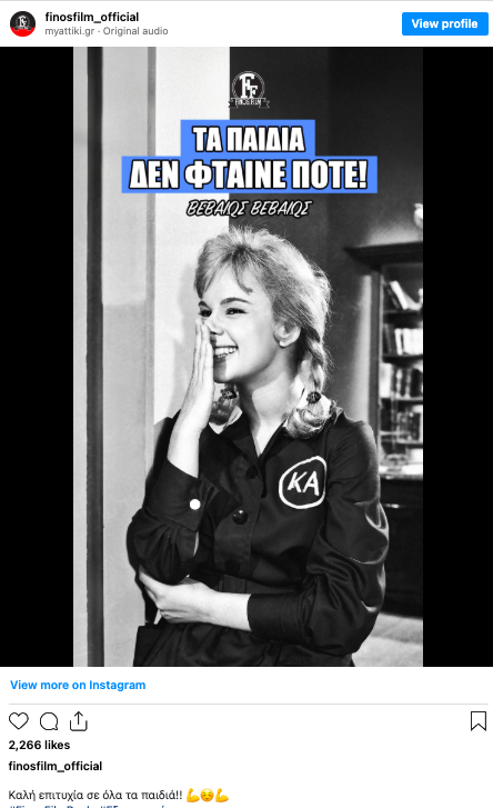 With the beginning of the Panhellenic exams, Finos Films wanted to send a cheerful “good luck” to all students. Through a photo on their official social media accounts, the legendary production company shared their best wishes.