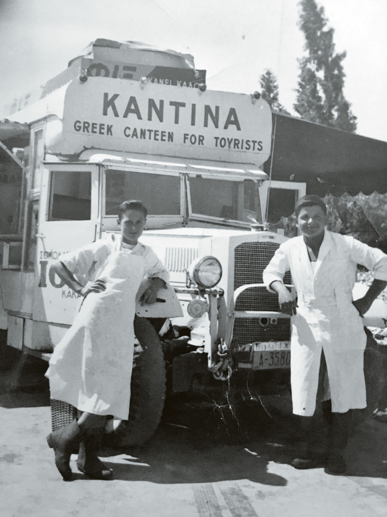 “Our first store was opened by my father, Nikos Kosmidis, in 1963, a little higher up, and since 1985 we are in our current location. It also operated with service, when cafés as we know them today didn’t exist yet. Boys and girls would come after school for coffee, sweets, or ice cream. The lemon pie, with my father’s recipe for years, was and remains our signature product. Before that, my father had created the first food truck in Greece — an ambulance left by the British in 1953, which was set up at the Acropolis — until it was stopped in 1967 due to the junta — and when there were no tourists, he went to festivals.”