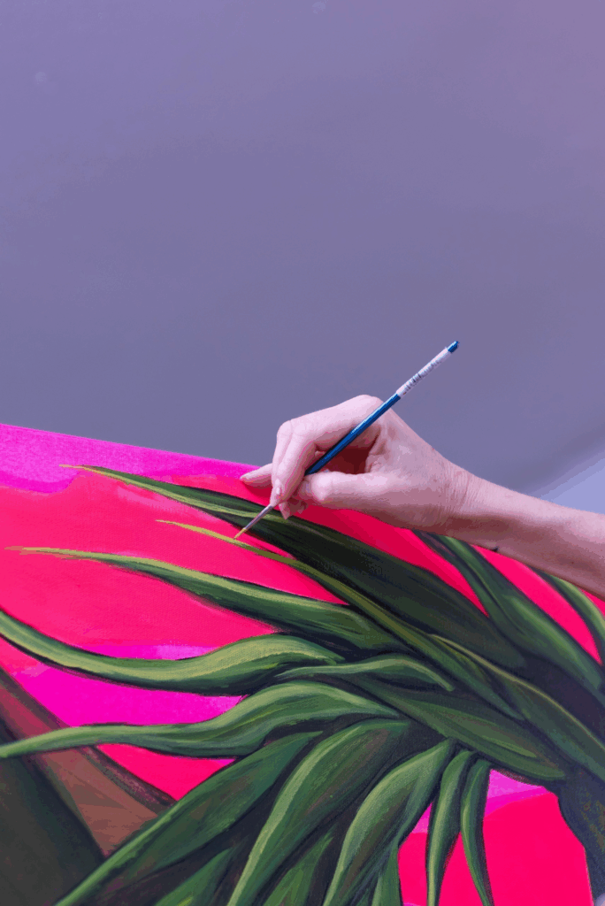 Her time at the Santa Fe Art Institute, under the thematic umbrella of “sovereignty,” proved transformative. In the silent, snowy desert, she contemplated the myth of Saint George slaying the dragon — a tale of masculine salvation. Her painting Here Be Dragons (2024), created in response, flips the narrative: the princess needs no savior. She slays her own dragons — adorned not in armor, but with a fire emoji. The residency uprooted her, she says, and replanted her anew, resulting in works like Corn Maidens (2024), which also formed the visual identity of the 2025 Thessaloniki Film Festival.