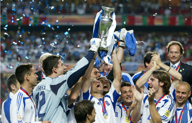 Their journey included a win over Portugal in the opening match, a draw with Spain, a loss to Russia at the end of the group stage (which didn’t cost them qualification), a quarter-final victory over France, and a legendary semi-final win over the Czech Republic with Traianos Dellas’ “silver goal” in extra time. The final came against the host team again, in their own stadium, with Greece conquering Europe and the world bowing in admiration.