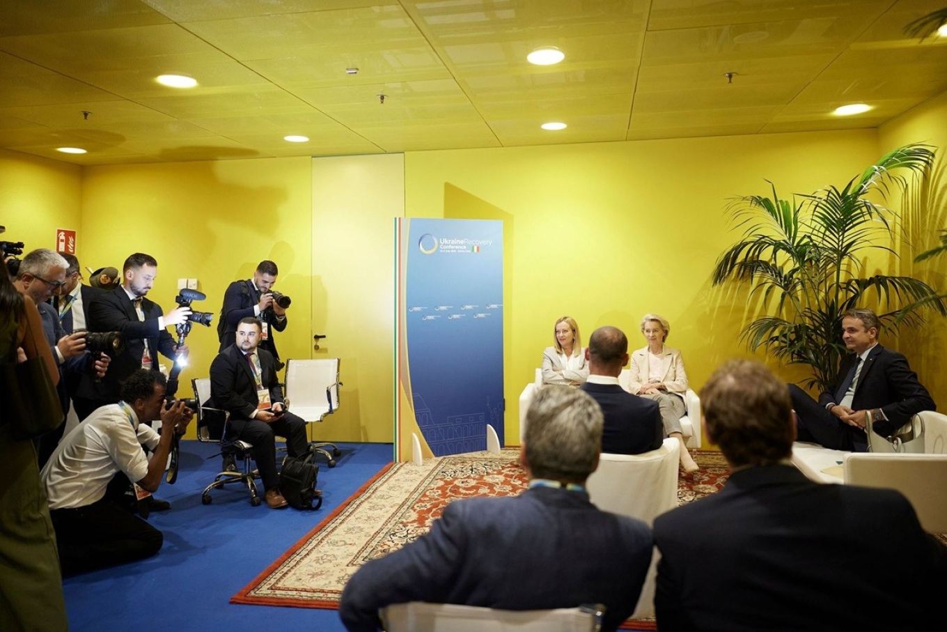 Greek Prime Minister Kyriakos Mitsotakis met with European Commission President Ursula von der Leyen, Italian Prime Minister Giorgia Meloni, and Maltese Prime Minister Robert Abela in Rome, on the sidelines of the Ukraine Reconstruction Conference.
