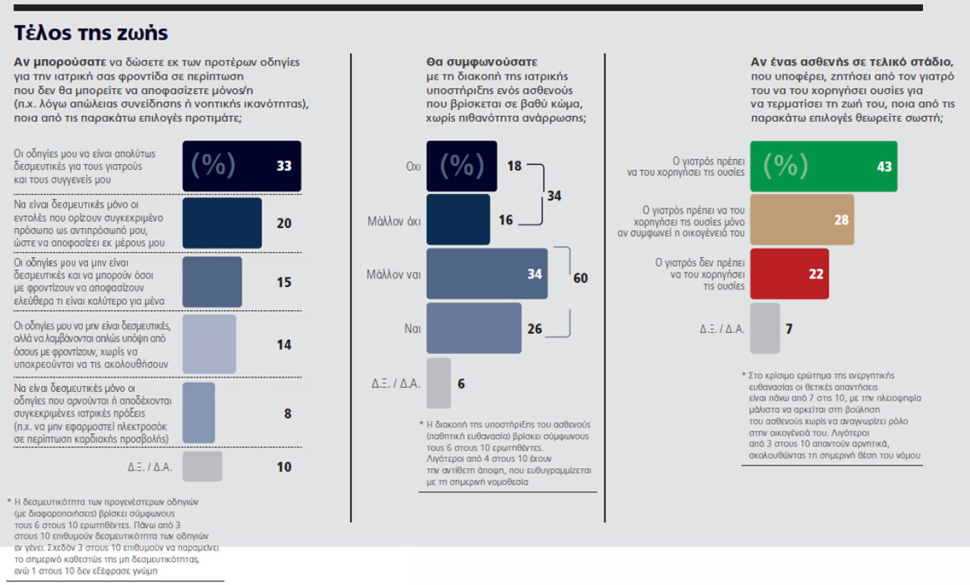 And as indicated by the related questions in the NCBT’s survey, the majority of Greeks do not condemn—on the contrary, they accept—the deliberate ending of a human life when, from a medical standpoint, all meaning and hope of prolongation have been lost.
