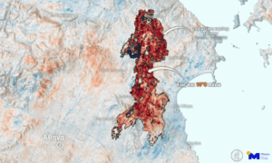 A significant increase in soil temperature in areas where forest vegetation has been destroyed by fire, confirms satellite data analyzed by the Meteo unit of the National Observatory of Athens.