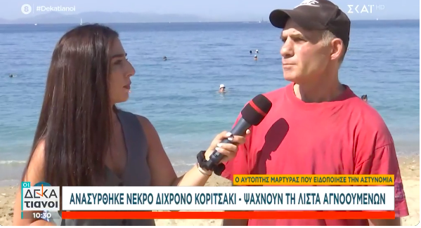 “I came around 3 AM for a night swim, and at about 3:30 I noticed police lights. The officers arrived on foot. I was about 100 meters away when they shone their lights on the sand — there was a small girl, wearing a one-piece swimsuit. An ambulance came, they covered her with a blanket, and took her away,” Mr. Marios told SKAI.