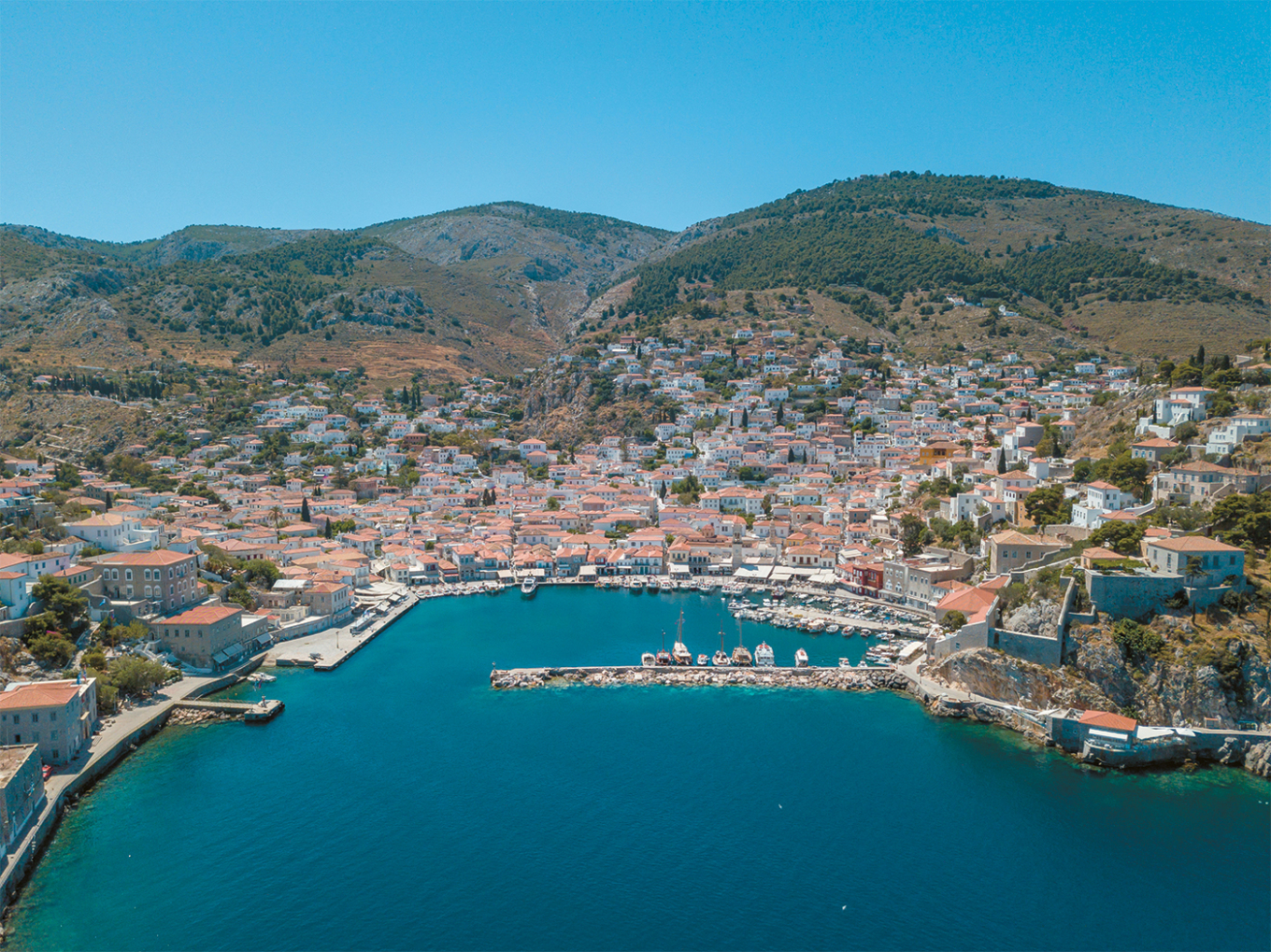 Two precious gems of the Saronic Gulf. Radiating natural beauty, cultural value, historical identity, and refined elegance. Hydra and Spetses. Traditional and cosmopolitan, youthful and classic, vibrant and serene—they create a scene that refuses to surrender to the fetish of motor vehicles.