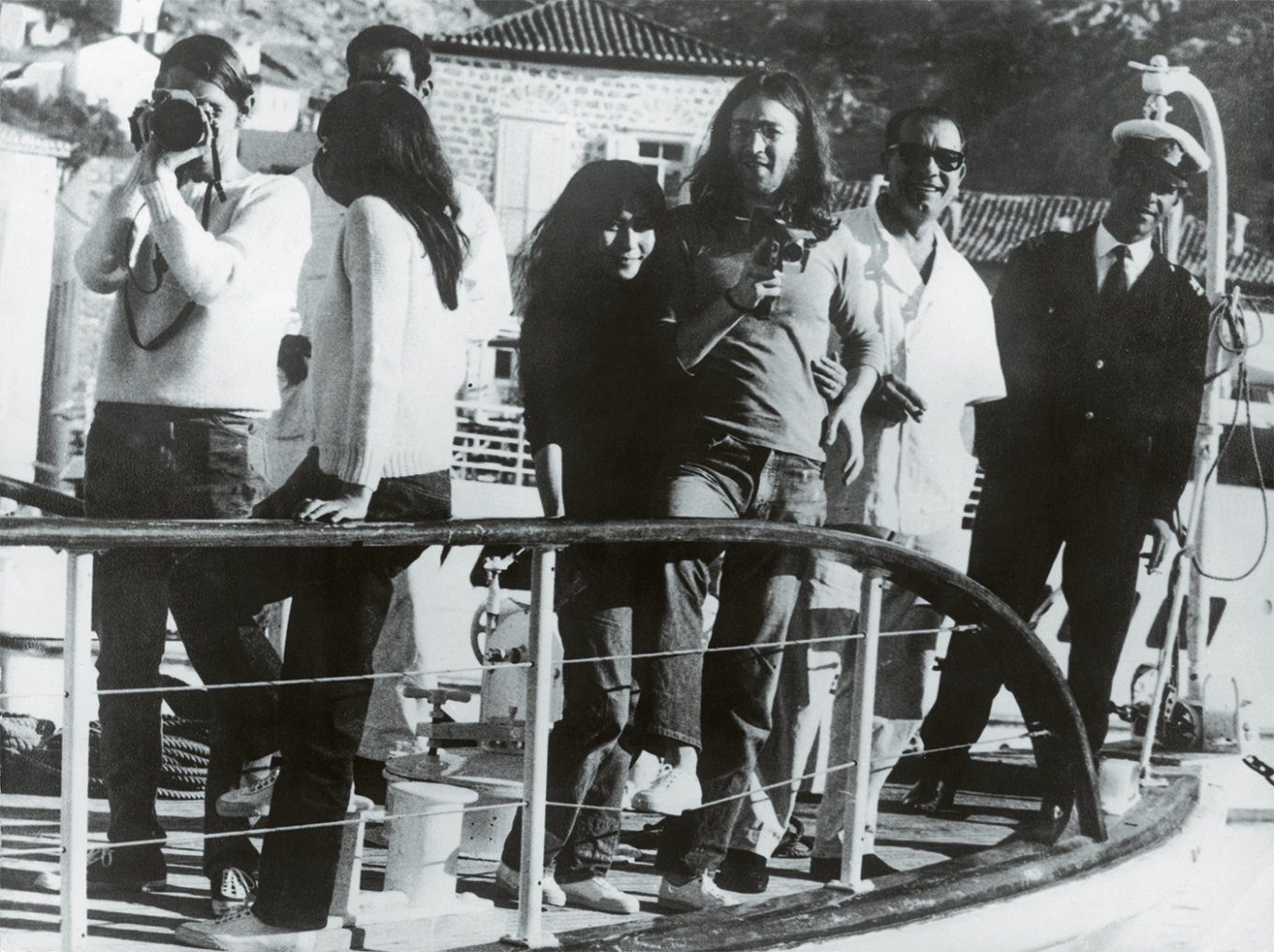 John Lennon and Yoko Ono on a yacht in Spetses harbor