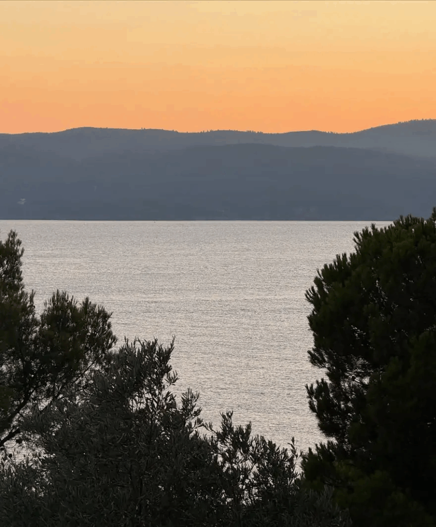 Konstantinos Argiros enjoys a sunset swim in Skiathos